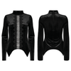 Élevez votre garde-robe gothique avec ce haut en velours noir, confectionné en velours ensoleillé ultra-doux pour une finition élégante. Doté d'un col montant et d'un ourlet pointu, il allie élégance et audace. La dentelle creuse symétrique est accentuée par des clous, ajoutant des détails gothiques raffinés. Parfait pour être associé à des jupes ou des pantalons, ce haut en velours apporte une sophistication sombre à toute tenue alternative.