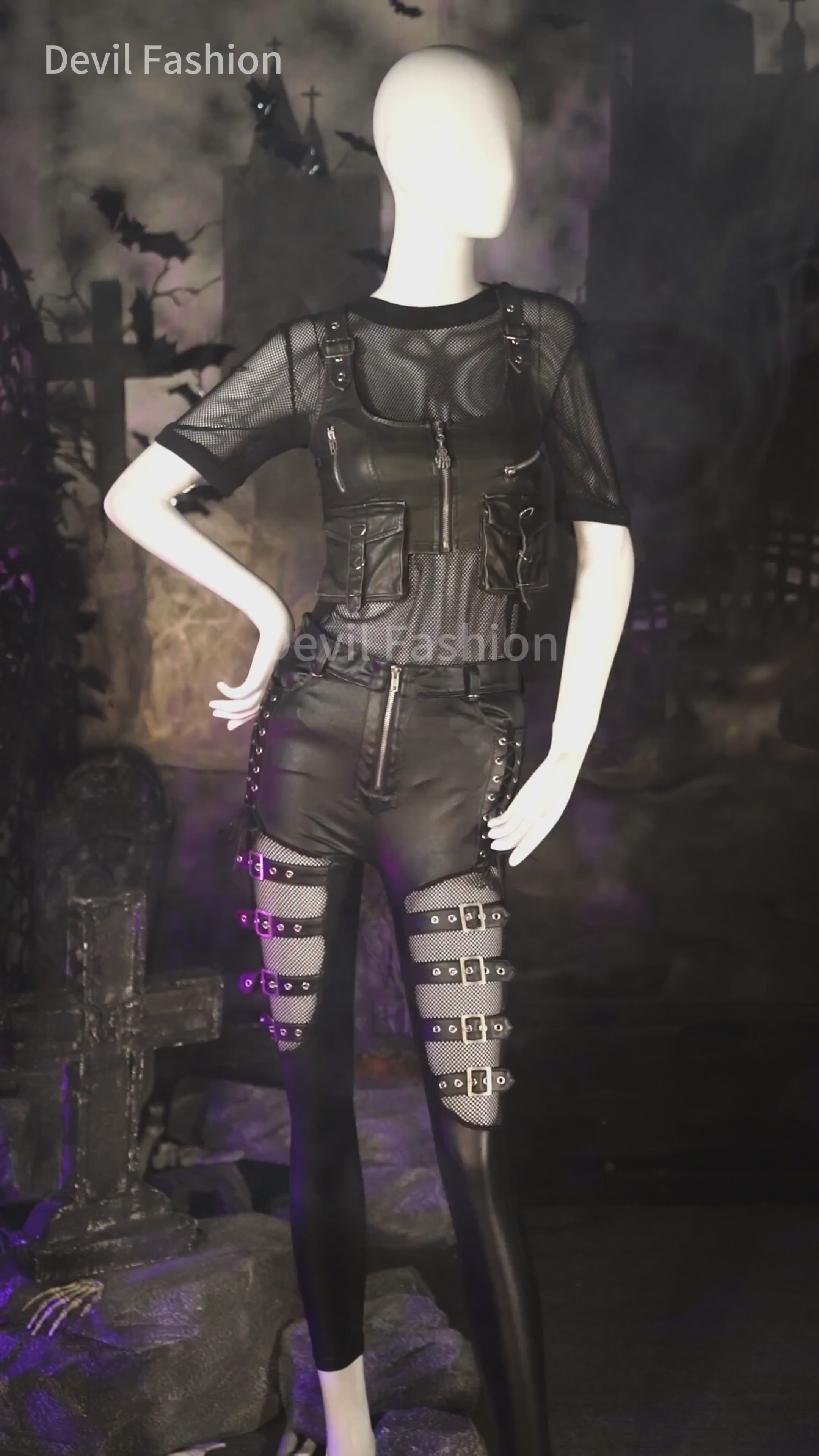 Vous ne pourrez pas passer à côté de ce modèle stylé de pantalons pour femmes au style punk. Ce pantalon noir est confectionné en cuir PU et possède une coupe ajustée qui mettra en valeur tous les bienfaits de votre silhouette. Ils ont également des bretelles et des inserts en maille comme décoration tendance. Avec ce pantalon noir, vous pourrez créer de nombreuses tenues punk.