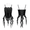 Haut Corset à Franges en Velours Noir Gothique à Lacets