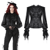 Entrez dans la sophistication gothique avec ce chemisier inspiré de l'époque victorienne, doté d'un devant à volants, d'épaules bouffantes et de manches cloche dramatiques bordées de dentelle. Le design boutonné ajoute une touche de structure, tandis que les poignets en dentelle fluide apportent une touche romantique. Parfait pour des tenues gothiques ou alternatives, ce haut se marie magnifiquement avec des corsets, des jupes ou des pantalons ajustés pour un look affirmé.
