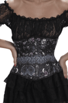 Adoptez le charme du corset sous-poitrine Gothic Enchantment, conçu avec un magnifique satin imprimé numérique présentant des motifs floraux sombres et de lune. Idéal pour créer un look gothique saisissant, ce corset combine des baleines en acier pour la structure avec un dos à lacets élégant. Disponible en noir classique, ce corset s'associe facilement avec des tenues gothiques ou steampunk, offrant une touche dramatique à toute garde-robe.