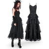 Cette superbe robe en dentelle noire présente un design à volants superposés avec un look sophistiqué et inspiré du vintage. Confectionnée avec une combinaison de dentelle et de satin, elle offre une silhouette flatteuse avec des bretelles ajustables et un corsage froncé pour un ajustement parfait. La robe est idéale pour des occasions à thème gothique, victorien ou romantique, mêlant élégance et charme sombre dans un design intemporel.