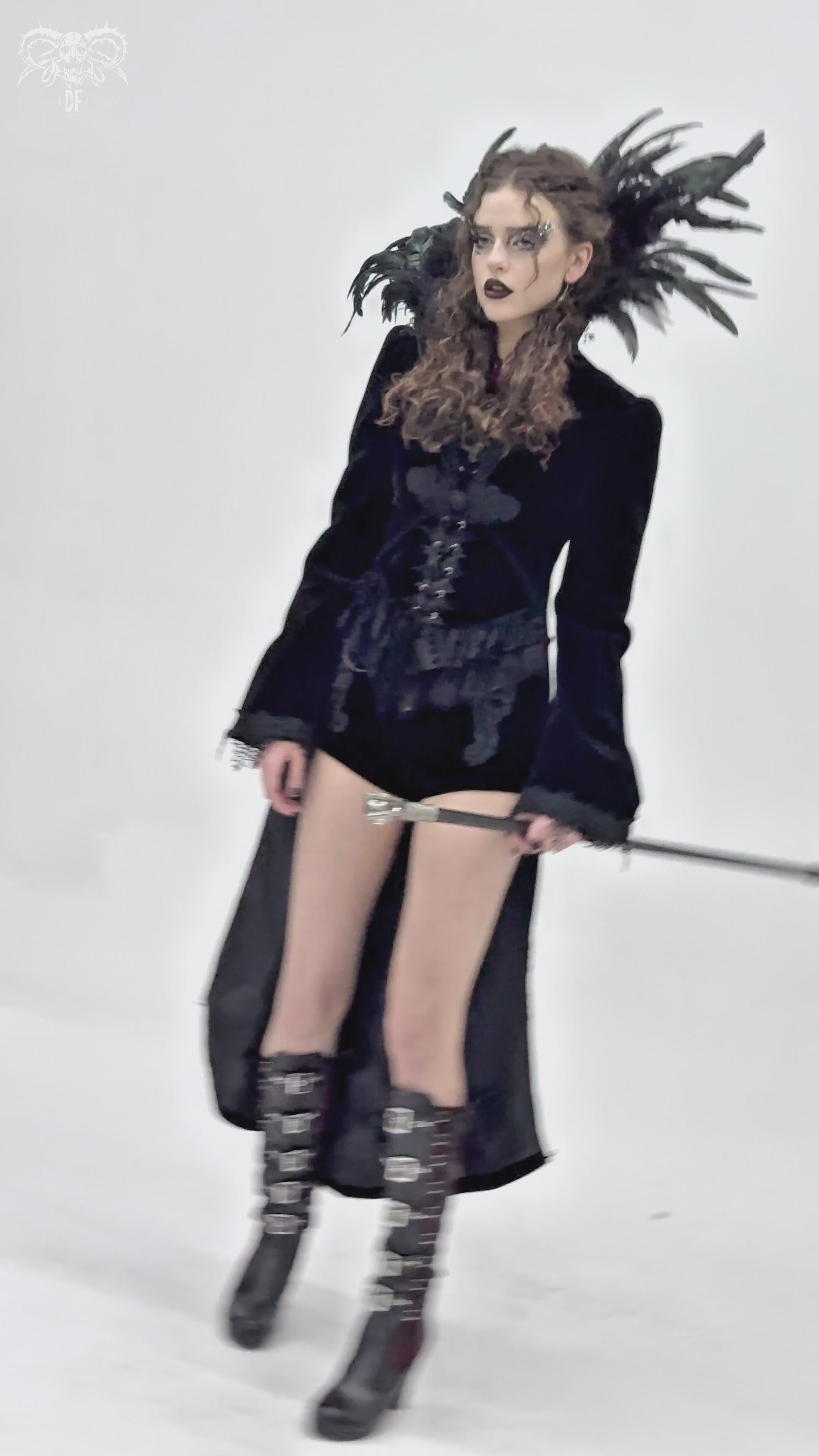 Elegant Women's Velvet Coat with Feather Collar Aller au contenu