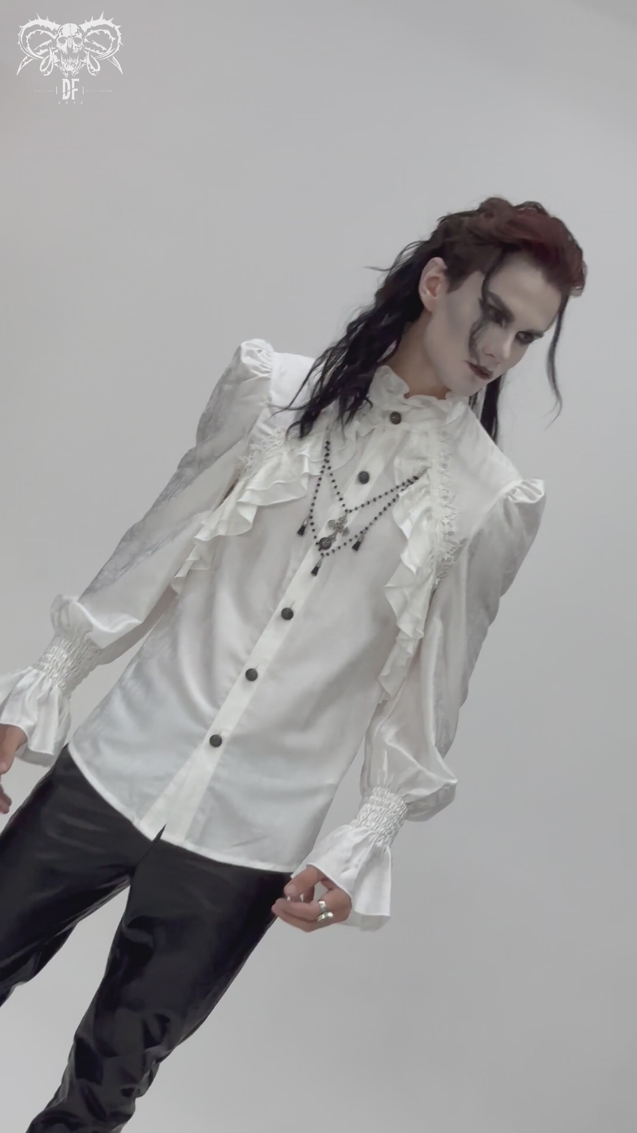 Chemise blanche élégante victorienne gothique à manches longues et à v Aller au contenu