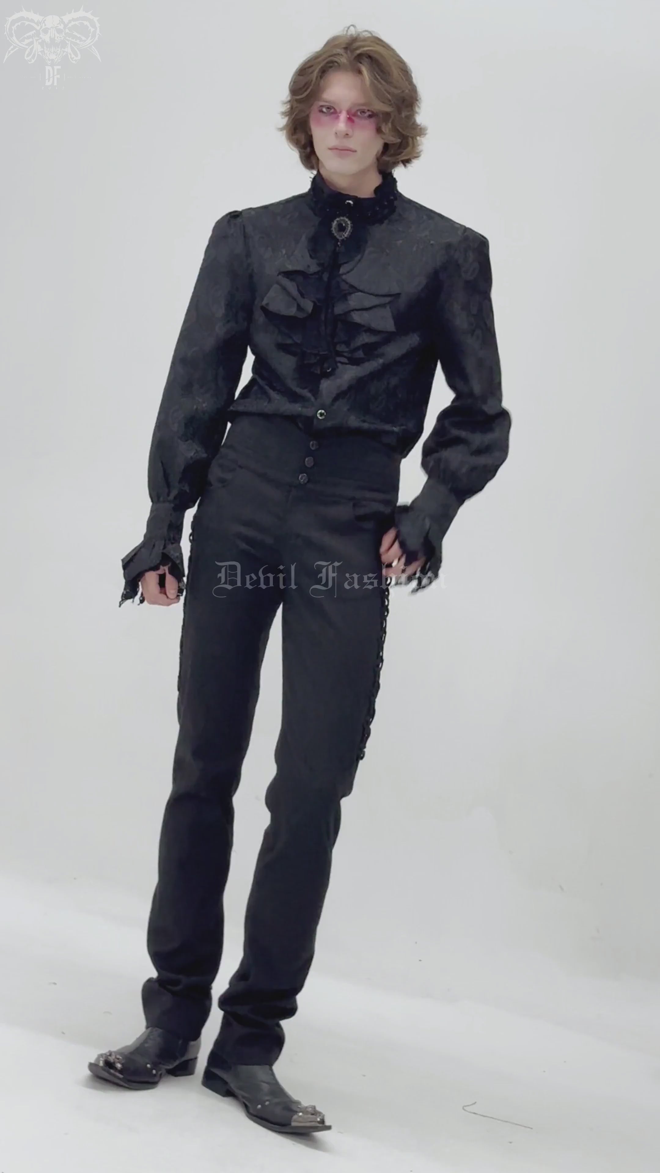 Pantalon gothique en soie noire / Pantalon taille haute pour hommes Aller au contenu
