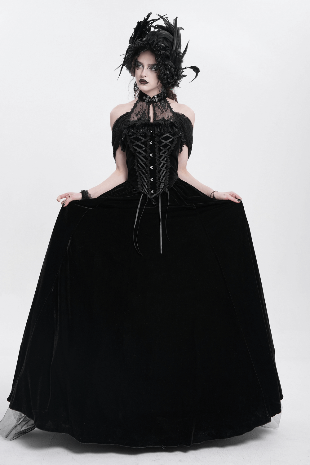 Robe Maxi Gothique en Velours avec Lacets et Design Épaules Dénudées Aller au contenu