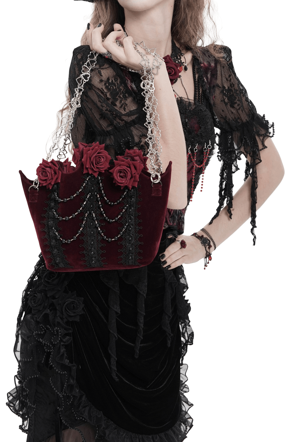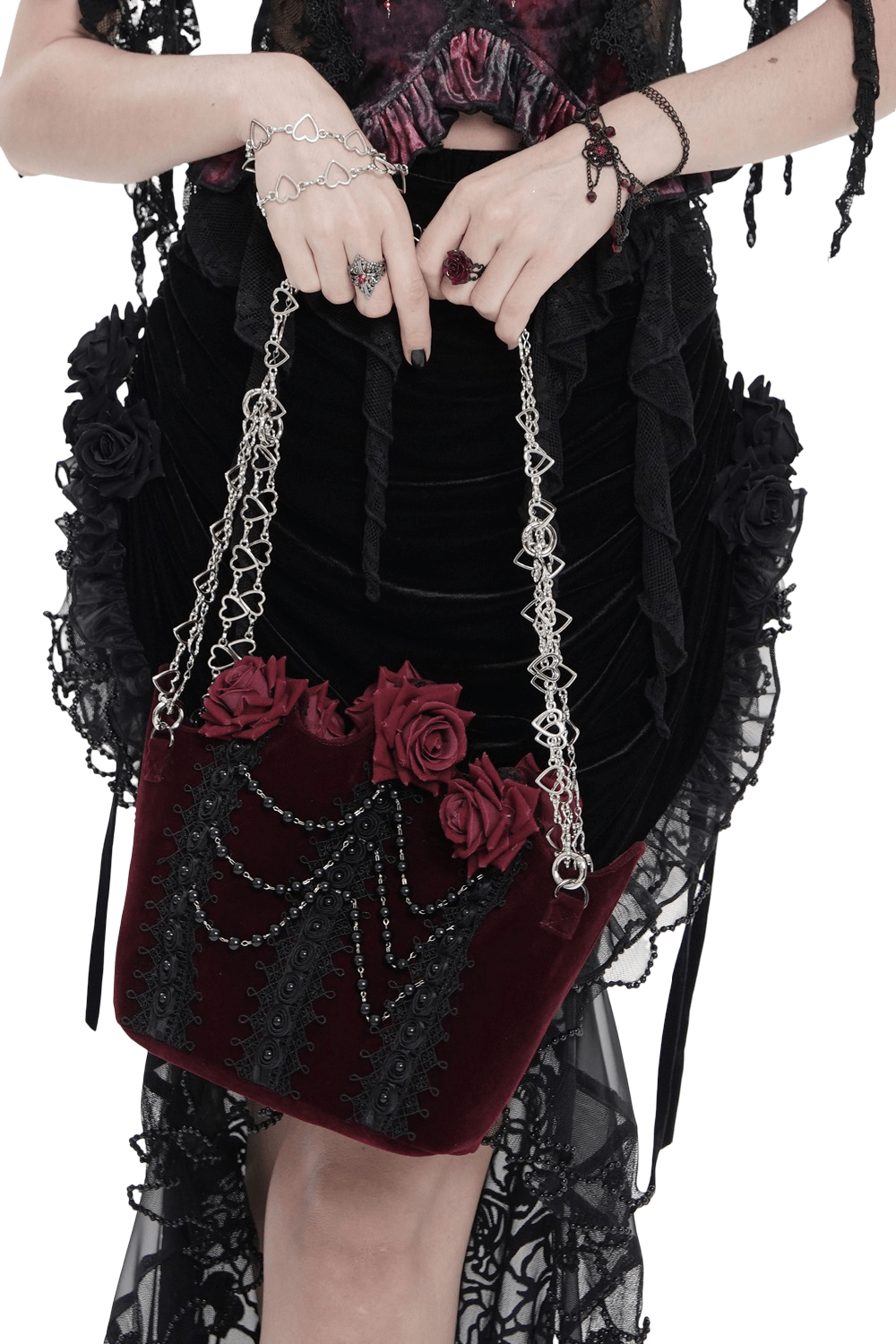 - ルックを完成させる スカルモチーフのバッグや、 ヴィンテージ風のハンドバッグ、 暗い優雅さを放つステートメントジュエリーなどのゴシックアクセサリーで。