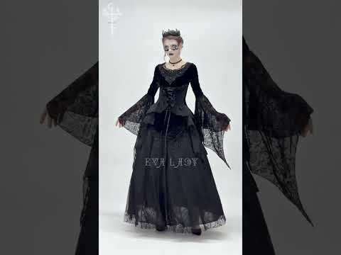 고딕 여신: 레이스 트림 긴팔 상의를 흐르는 맥시 스커트, 독특한 목걸이, 플랫폼 힐과 매치하여 어둡고 로맨틱한 앙상블을 완성하세요.