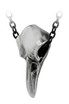 A telling token of the great black bird, famous for its prophetic powers, is that it is Odin's messenger and capable of foretelling death. This authentically detailed miniature raven's skull pendant is crafted in polished pewter. The chain passes through the skull's eyes, making it a striking piece inspired by Norse mythology and symbolism.