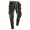 Men's jogging bottom joggers. Slim-fit pants with elastic waist and zip pockets. Trousers for sports and leisure. In black or camouflage color. Use for jogging, walking, running, leisure, exercise, fitness, sport, activity.