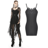 Channel your inner goth goddess with this stunning black bodycon dress. Featuring a flattering halter neckline and delicate lace trim detailing, this dress is sure to turn heads wherever you go. The stretchy fabric hugs your curves in all the right places, while the lace trim adds a touch of femininity. Perfect for a night out on the town or a special occasion, this dress is sure to make you feel confident and beautiful.