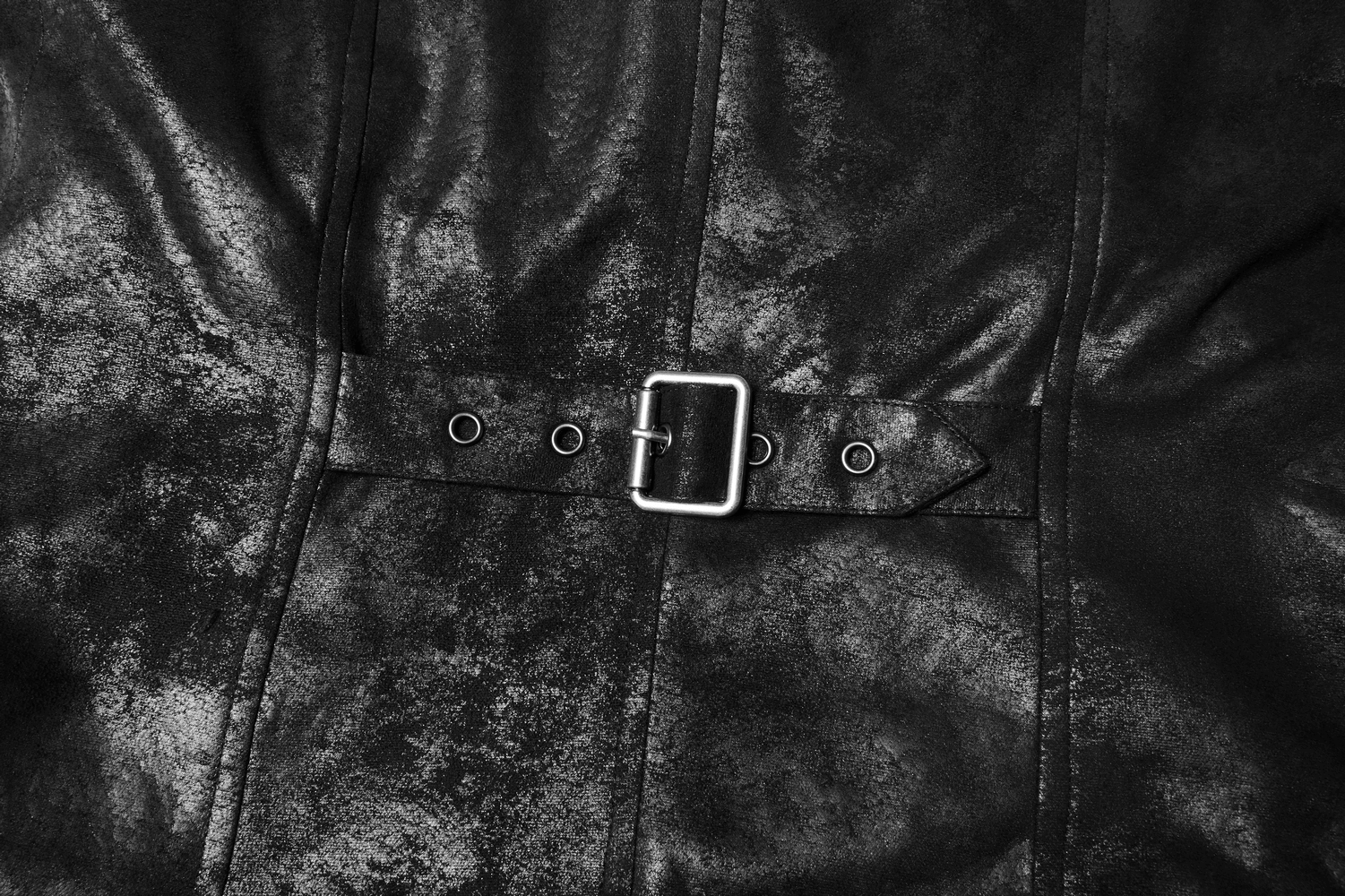 Discover our Gothic Leather Buckle Long Cape crafted from a unique coating crack woven fabric that ensures durability and visual appeal. The front placket boasts Pu leather buckles that add a distinctive touch, while stacked sleeves and side pockets merge functionality with style. Ideal for making a statement in any alternative fashion ensemble. Step into the bold world of gothic style with this essential piece.